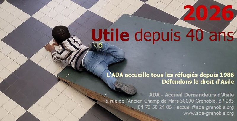 L’ADA – Accueil Demandeurs d’Asilea invitait ses adhérents, partenaires à son Assemblée Générale le Vendredi 20 Mars 2026  dans ses locaux 5, rue de l’Ancien Champ de Mars – Grenoble